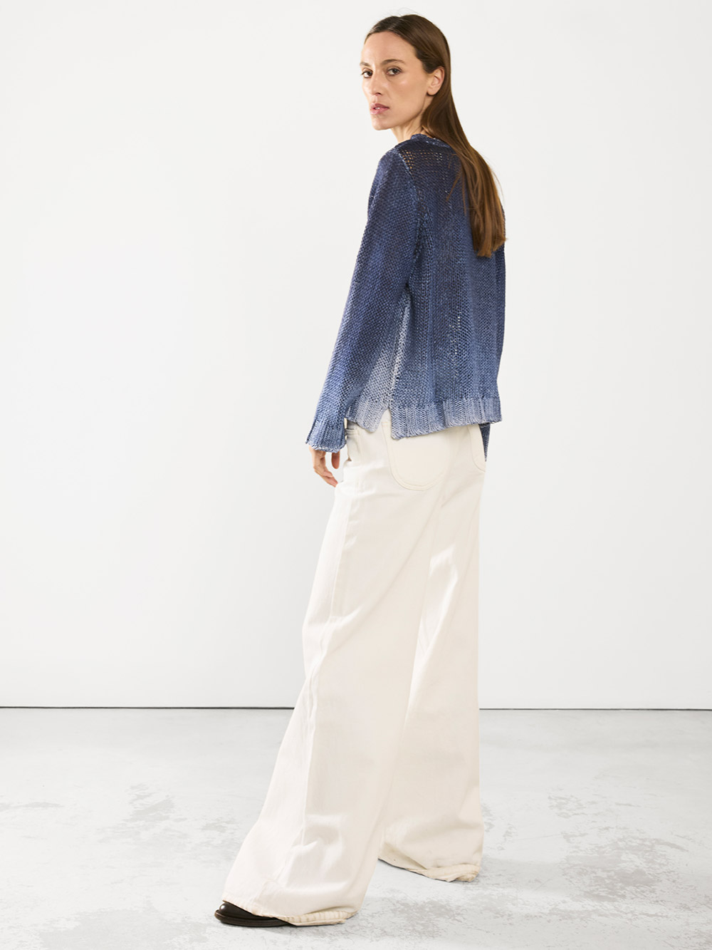 Questo capo è stato tinto a mano individualmente per ottenere un effetto colore unico. Ogni singolo pezzo può risultare diverso uno dall’altro e mostrare alcune irregolarità, segno distintivo di un processo artigianale.