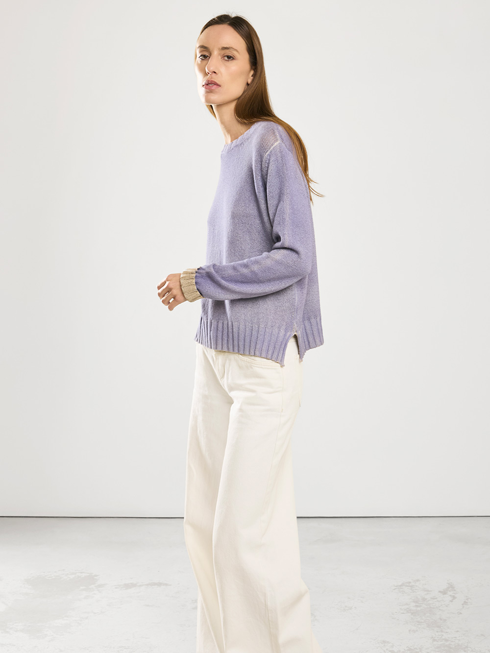 Maglia girocollo con rifiniture in costa larga dalla vestibilità regular.