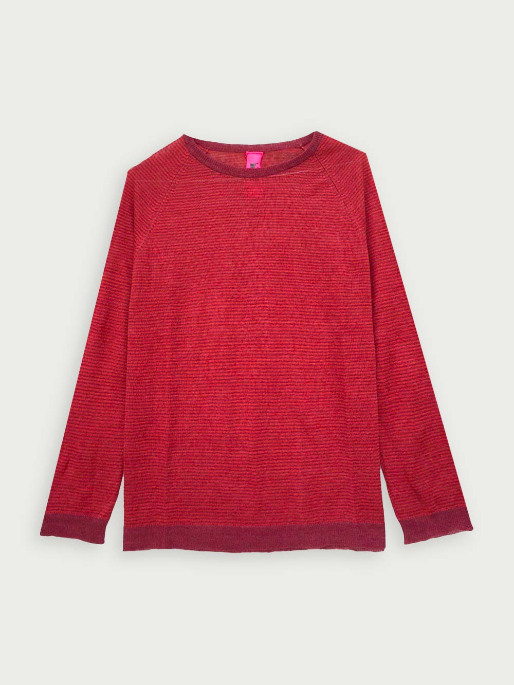 Maglia girocollo a righe con manica raglan e spacchetti laterali.