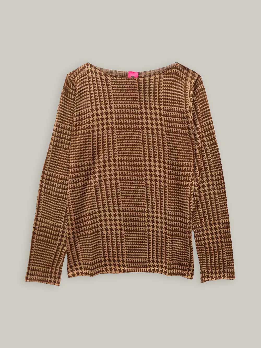 Maglia scollo barchetta avorata su finezza 16. La vestibilità offre volumi regolari sia sul busto che sulle spalle.