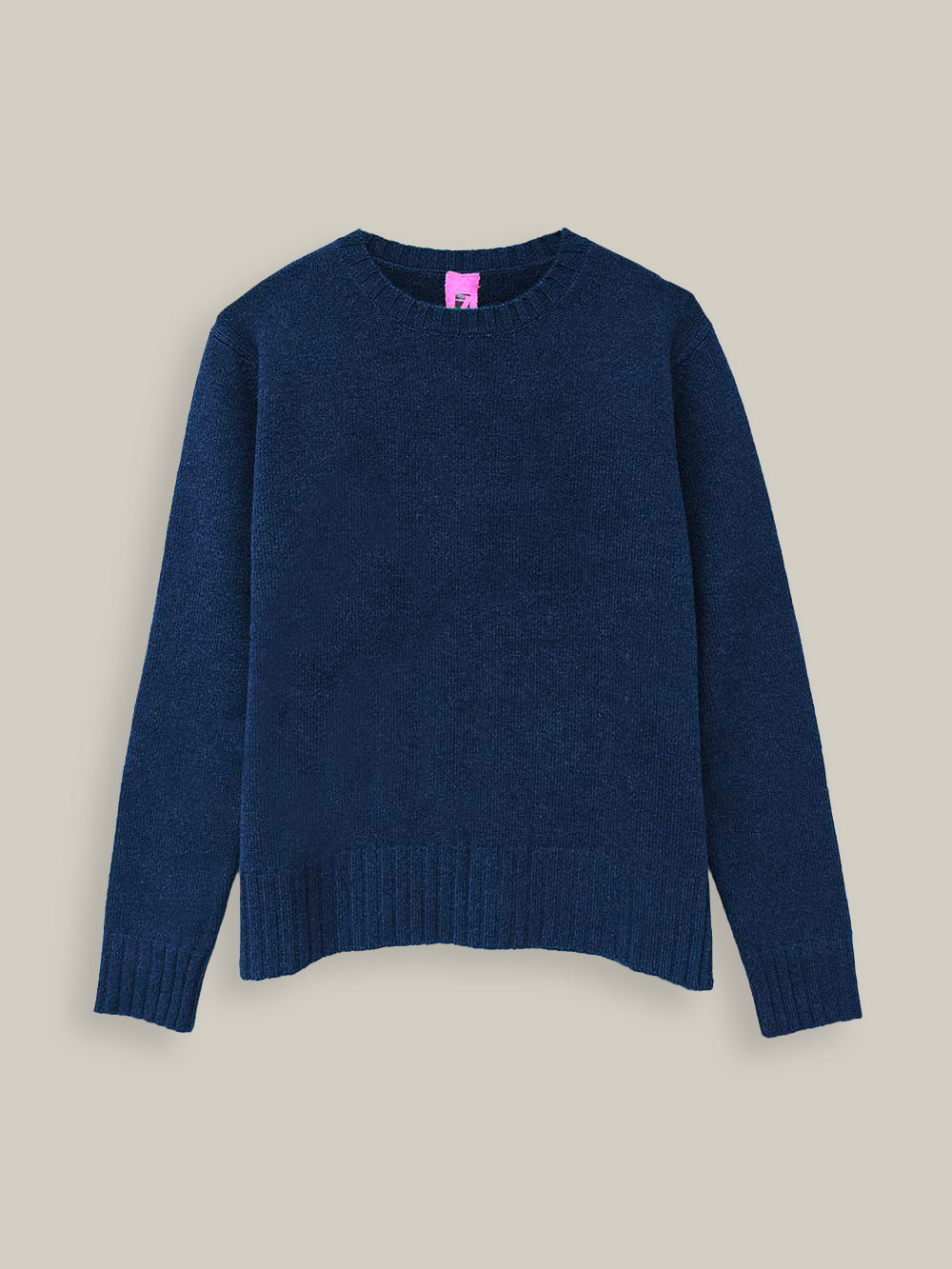 Maglia girocollo spessa lavorata su finezza 8 con spacchetti laterali.