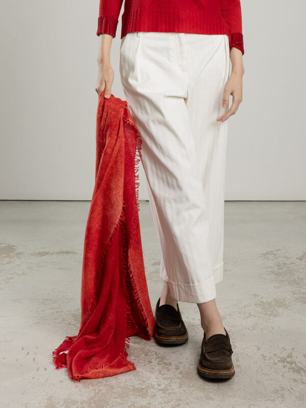 Sciarpa in puro cashmere infeltrito lavorata a telaio.